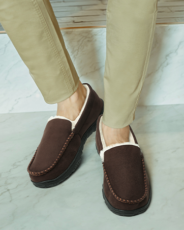 festooning Mens Slippers House Shoes with Memory Foam Moccasin Slipper for Men with Non-Slip Rubber Sole Indoor Outdoor